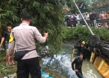 KABUPATEN SERANG, BantenHeadline.com - Diduga karena ban mengalami slip, akibat jalanan licin setelah diguyur hujan, sebuah truk jenis Mitsubishi Colt...