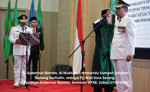 KOTA SERANG, BantenHeadline.com – Sabtu sore, 21 September 2024 sekira jam 16.00 WIB, H. Nanang Saefudin, yang sebelumnya menjabat sebagai Sekretaris Daerah (Sekda) Kota Serang resmi dilantik sebagai Penjabat (Pj.) Wali Kota Serang. Nanang menggantikan posisi Yedi Rahmat, setelah mantan Wali Kota Syafrudin mengakhiri periode masa jabatannya pada 8 Desember 2023.