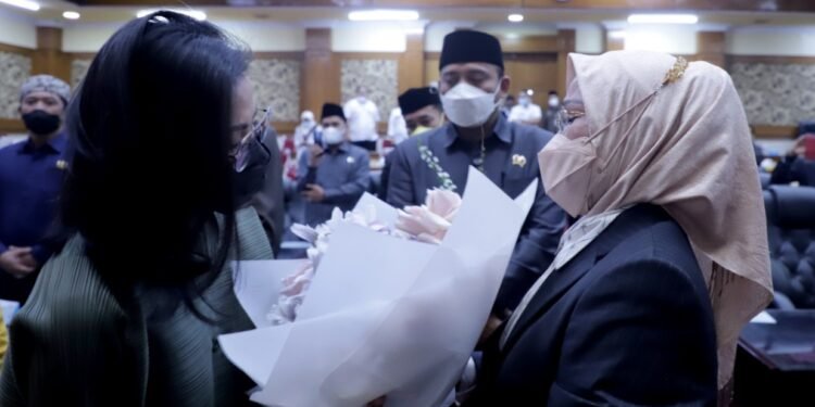 KABUPATEN SERANG, BantenHeadline.com – Bupati Serang Ratu Tatu Chasanah tidak bisa menahan haru. Tangis dari kedua matanya tak bisa tertahan atas semua kejutan yang diberikan putri kandungnya, dr Kamila Ratu Chaidir. Kejutan tersebut diberikan usai Rapat Paripurna di Gedung DPRD Kabupaten Serang, Rabu (22/12/2021).