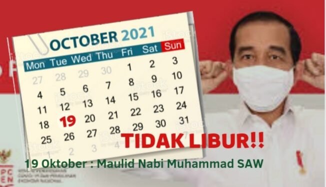 KOTA SERANG, BantenHeadline.com – Pemerintahan Jokowi melalui keputusan 3 Menteri-nya secara resmi telah meniadakan hari libur nasional pada Selasa 19 Oktober 2021 yang sedianya diperingati oleh umat Islam di Indonesia sebagai hari Maulid Nabi Muhammad SAW, meski dalam kalender nasional tanggal tersebut tercetak dengan warna merah.