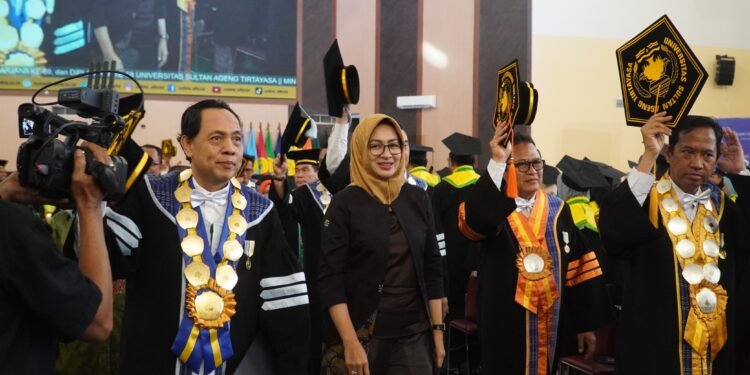KABUPATEN SERANG. BantenHeadline.com – Mantan Wali Kota Tangerang Selatan, Airin Rachmi Diany, menyampaikan orasi ilmiah dalam Wisuda IV 2024 Universitas Sultan Ageng Tirtayasa (Untirta), Minggu (11/8/2024). Dalam orasinya, Airin menjabarkan berbagai tantangan dan proyeksi program yang bisa dijalankan dalam membangun ekonomi Banten dan Indonesia Emas 2045.