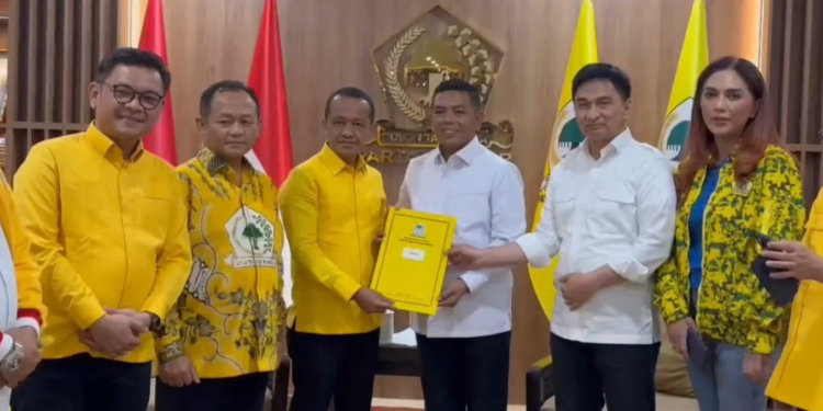 Dukungan bagi pasangan Andra-Dimyati diberikan langsung oleh Ketua Umum Partai Golkar, Bahlil Lahadalia Andra Soni-Dimyati dengan menyerahkan formulir B1 KWK di Kantor DPP Partai Golkar, Jakarta Barat.