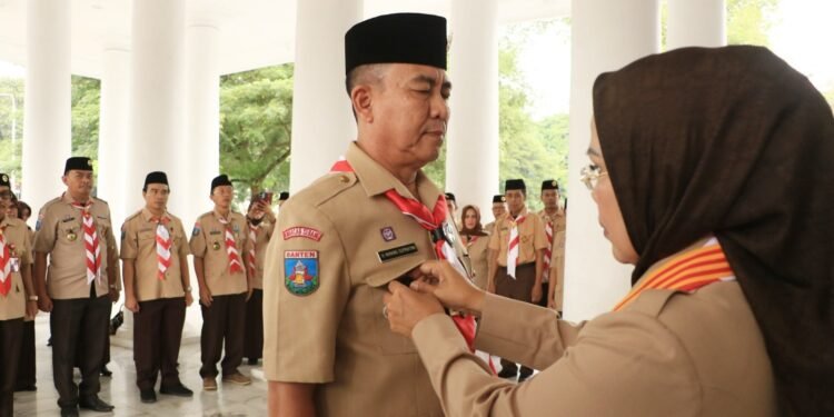 KABUPATEN SERANG, BantenHeadline.com – Bupati Serang Ratu Tatu Chasanah melantik Nanang Supriatna sebagai Ketua Kwartir Cabang (Kwarcab) Gerakan Pramuka Kabupaten Serang, di Pendopo Bupati, Rabu (22/5/2024). Nanang yang juga Sekretaris Daerah (Sekda) Kabupaten Serang ini dilantik melalui Pergantian Antar Waktu (PAW) Masa Bakti periode 2022-2027, menggantikan Almarhum Pandji Tirtayasa, mantan Wakil Bupati karena tutup usia.
