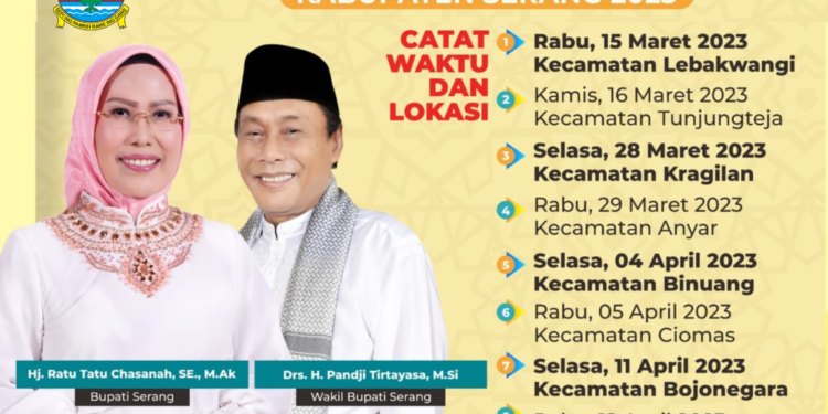 KABUPATEN SERANG, BantenHeadline.com – Menjelang Bulan Suci Ramadan, Pemerintah Kabupaten (Pemkab) Serang mulai mengantisipasi kenaikan harga sembilan bahan pokok (sembako). Salah satunya dengan menggelar safari Bazar Ramadan-Pasar Murah yang dimulai Rabu, 15 Maret hingga Rabu, 12 April 2023.