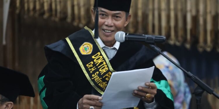 Dalam Sidang Terbuka, Syafrudin menyampaikan ucapan terimakasih dan rasa syukur kepada kerabat serta keluarga atas dukungan semangat, ditengah kesibukannya menjadi Wali Kota masih sempat menyisihkan waktunya untuk melanjutkan pendidikan program Doktoral.